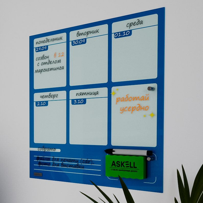 Доска-ПЛАНЕР магнитно-маркерный, голубой, 45х45, со скрытым креплением