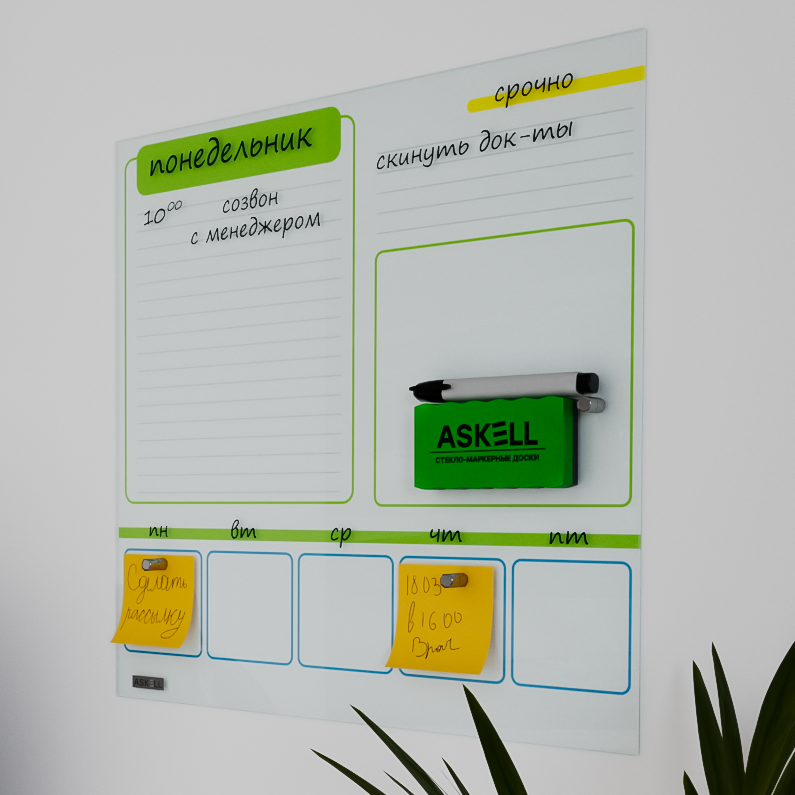 Доска-ПЛАНЕР магнитно-маркерный, белый с зеленым и синим, 45х45, со скрытым креплением